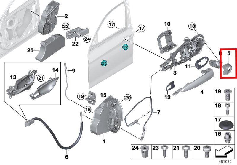 แผ่นปิดประตูลงสีพื้นด้านซ้าย หมายเลขชิ้นส่วน: 51217162433 7162433